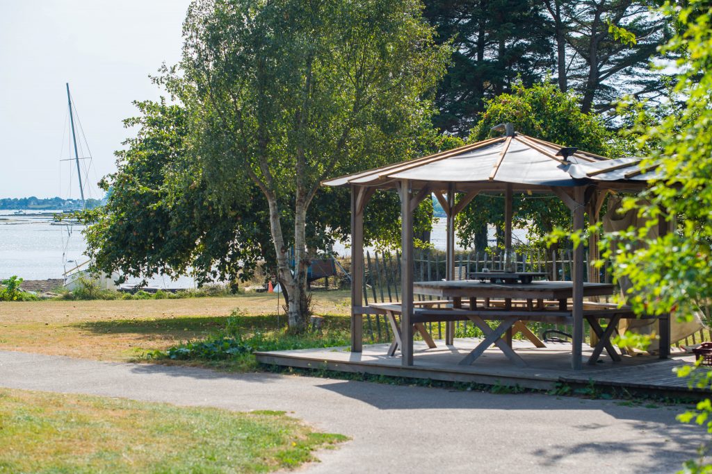 Pour l’extérieur, par quoi devons-nous commencer ? Le balcon à l’étage, la terrasse en bas : chacun vous offre une vue plus qu’apaisante sur la ria d’Etel. Les gîtes « Les Pieds dans l’eau » donnent un accès direct et privé sur le jardin et la petite plage. Idéal pour garder un œil à la fois sur les enfants qui s’amusent dehors et sur le barbecue de la cuisine d’été. En accord avec ce lieu, vous pourrez vous intéresser à notre jardin de permaculture.